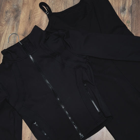 Take your athletic game to the next level with our Jumpsuit & Jacket combo. From the gym to your daily errands, this dynamic duo has got you covered with style and comfort! The material is A1 with a great stretch!